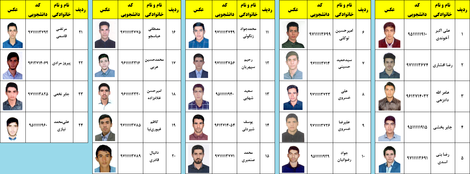 پردیس شهید باهنر دانشگاه فرهنگیان خراسان جنوبی به ترتیب الفبا – اردیبهشت ماه 1398