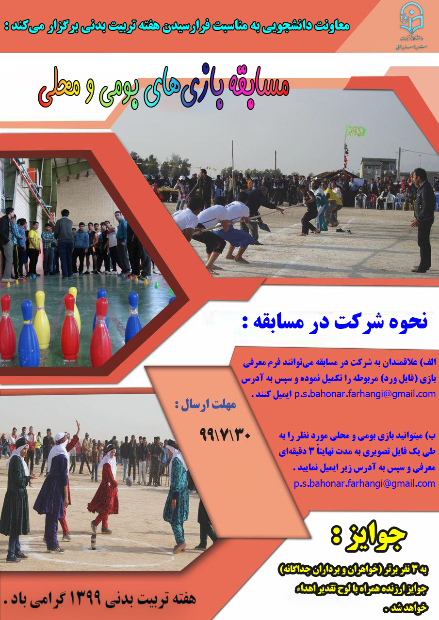 مسابقه بازی های بومی و محلی به مناسبت فرارسیدن هفته تربیت بدنی 1399