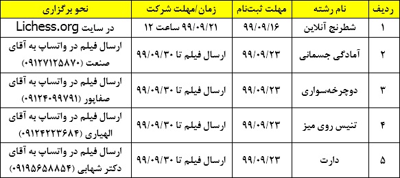 مسابقات مجازی رشته های ورزشی همگانی ویژه دانشجویان در 5 رشته