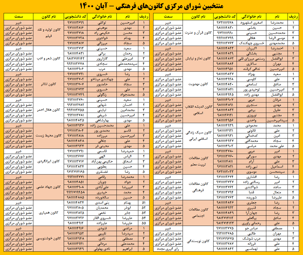 نتایج نهایی انتخابات کانون های فرهنگی: