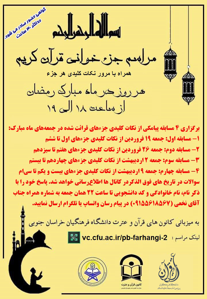 کانونهای قرآن و عترت دانشگاه فرهنگیان خراسان جنوبی برگزار مینمایند: