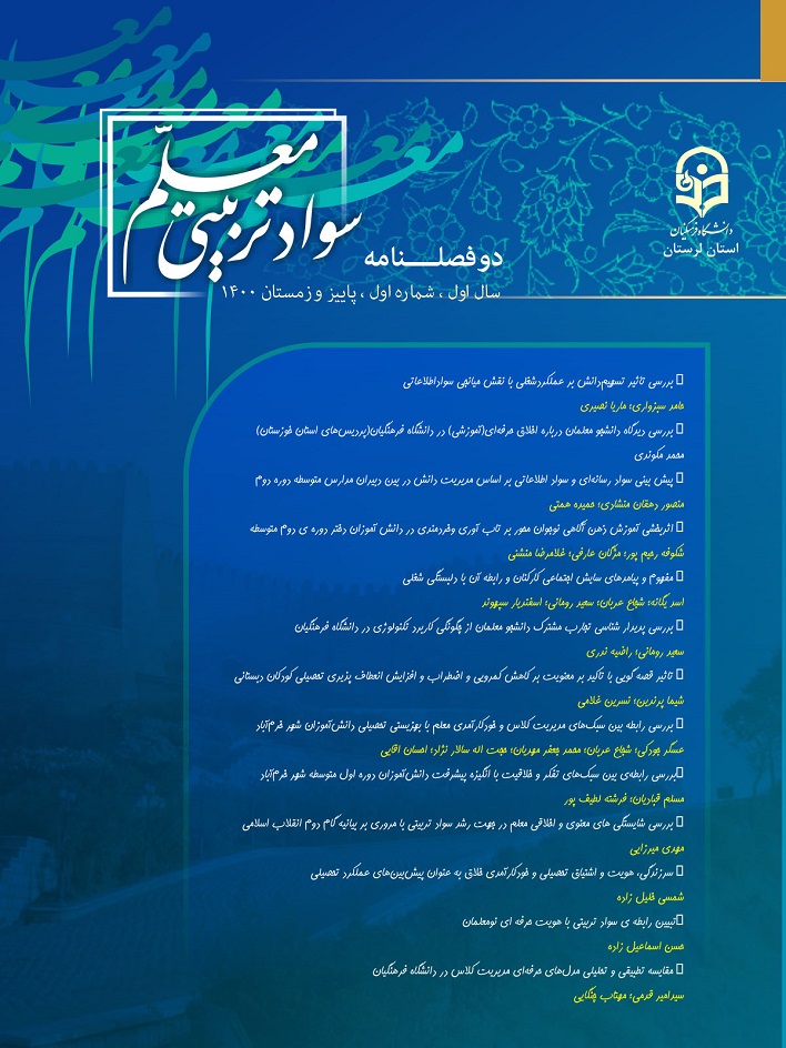 ضمن آرزوی قبولی طاعات و عبادات و تبریک به مناسبت فرا رسیدن عید سعید فطر، به استحضار می رساند، شماره اول دوفصلنامه «سواد تربیتی معلم» با سر دبیری استاد علی دلاور، منتشر گردید، لذ خواهشمند است دستور فرمایید به نحو مقتضی، به اعضای محترم هیأت علمی، اساتید و دانشجویان آن استان، جهت دریافت متن کامل مقالات منتشر شده و ارسال مقاله برای شماره های آتی، اطلاع رسانی گردد.