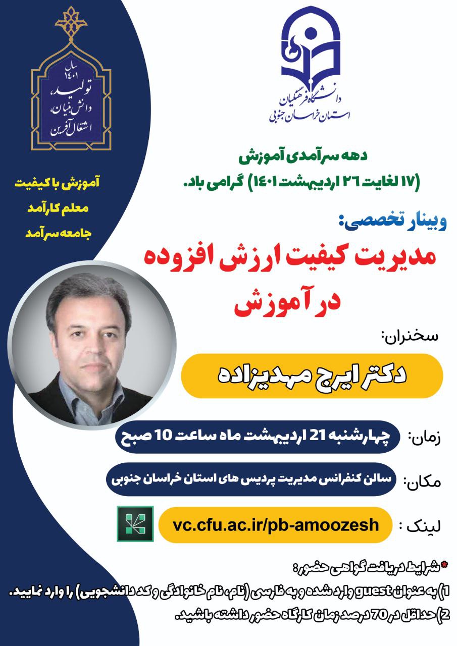 وبینار تخصصی مدیریت کیفیت ارزش افزوده در آموزش