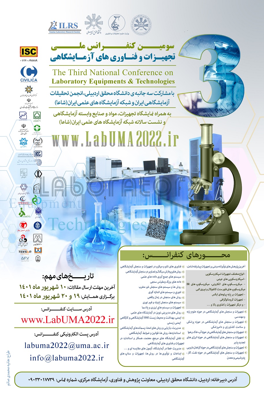 سومین کنفرانس ملی تجهیزات و فناوری های آزمایشگاهی در تاریخ ۱۹ شهریور ۱۴۰۱ توسط دانشگاه محقق اردبیلی، در اردبیل برگزار خواهد شد.با توجه به اینکه این همایش به صورت رسمی برگزار می گردد، کلیه مقالات این کنفرانس در پایگاه سیویلیکا و نیز کنسرسیوم محتوای ملی نمایه خواهد شد و شما می توانید با اطمینان کامل، مقالات خود را در این همایش ارائه نموده و از امتیازات علمی ارائه مقاله کنفرانس با دریافت گواهی کنفرانس استفاده نمایید.