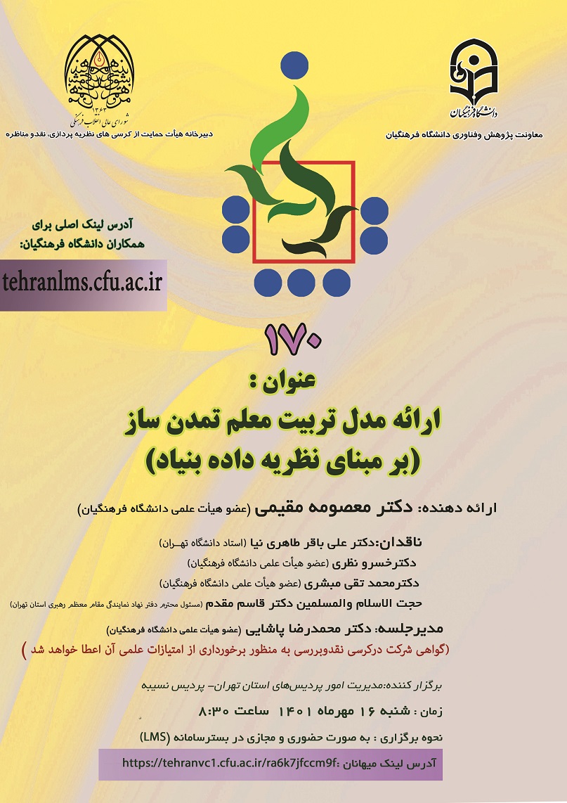 کرسی ترویجی 170 با عنوان ارائه مدل تربیت معلم تمدن ساز(برمبنای نظریه داده بنیاد)