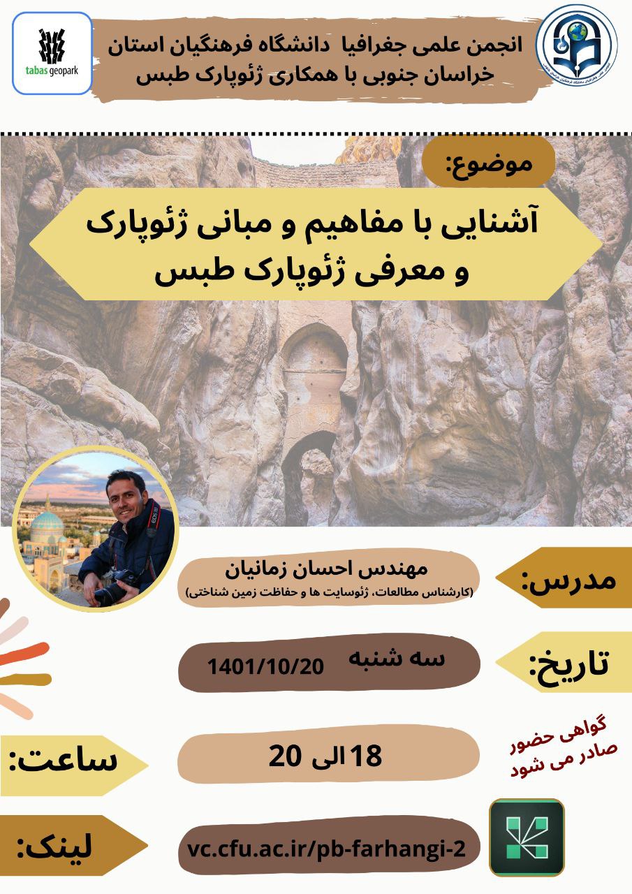 انجمن علمی جغرافیا دانشگاه فرهنگیان استان خراسان جنوبی با همکاری ژئوپارک طبس برگزار مینمایند :