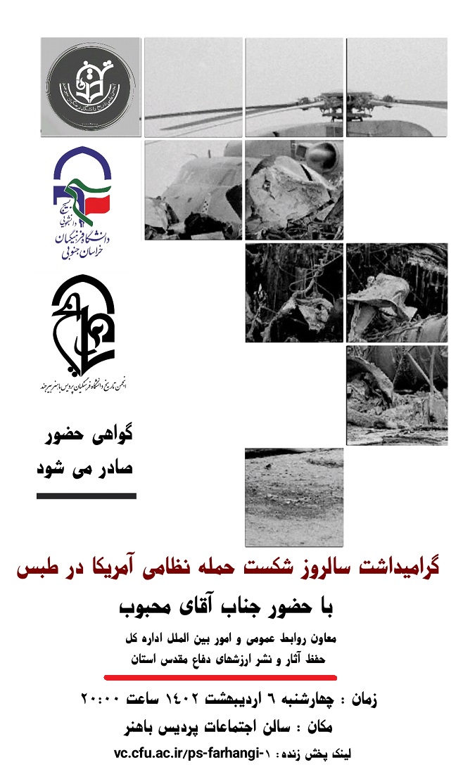 بسیج دانشجویی با همکاری انجمن علمی آموزش تاریخ به مناسبت گرامیداشت سالروز شکست حمله نظامی آمریکا در طبس برگزار می نمایند: