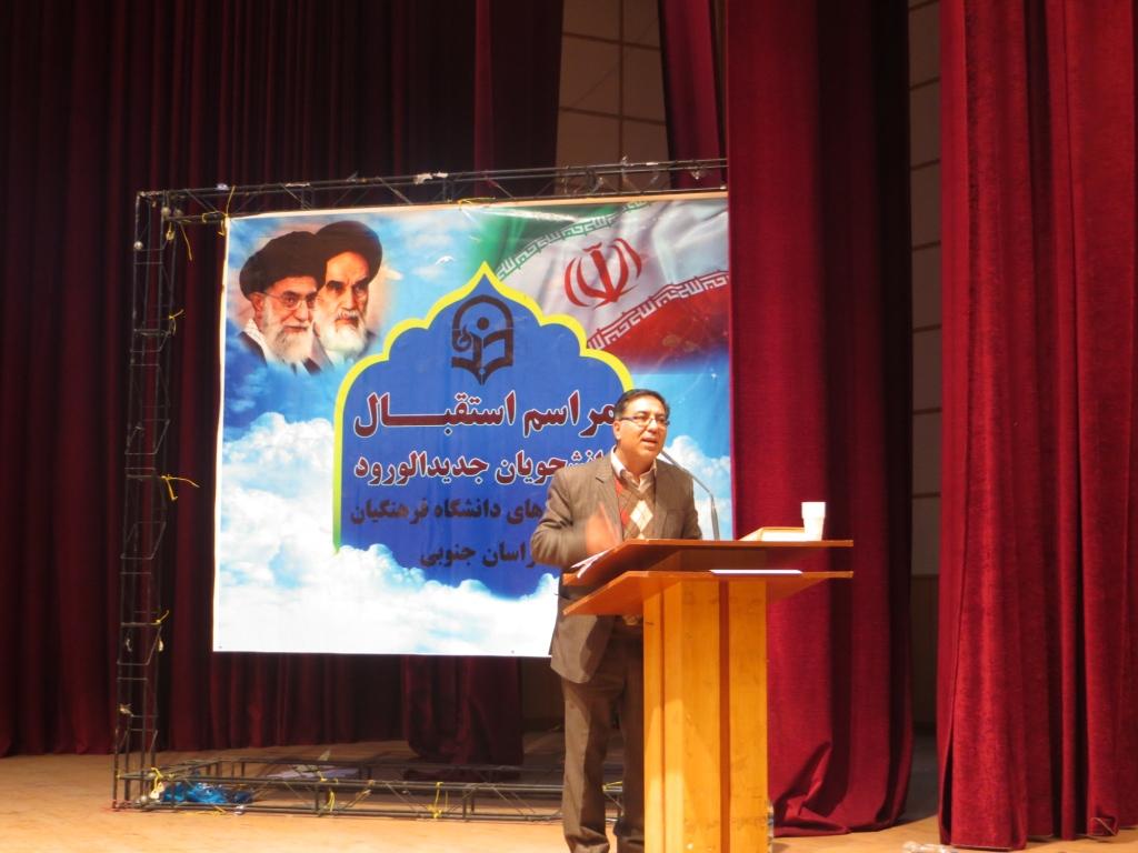 مراسم استقبال از دانشجویان ورودی بهمن93پردیس های دانشگاه فرهنگیان خراسان جنوبی با حضور دکتر انصاری راد در سالن علامه فرزان برگزار گردید .