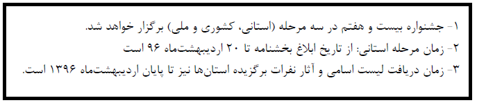 زمانبندی برگزاری جشنواره فرهنگی بیست و هفتم :