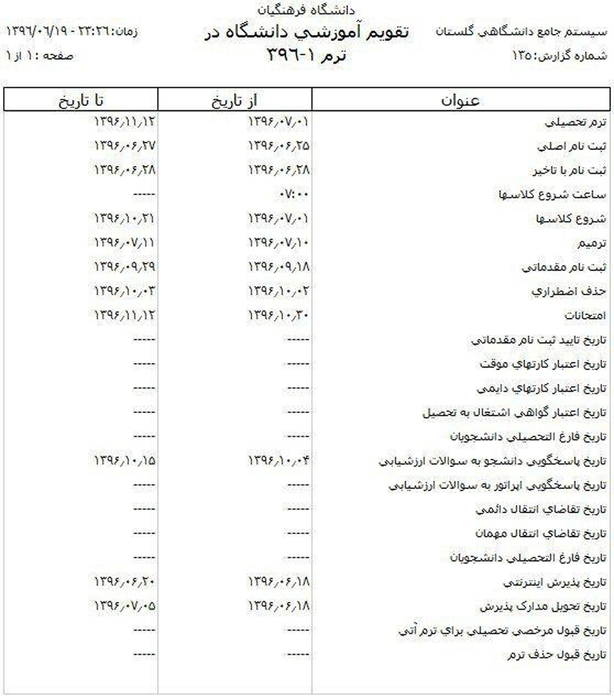 تقویم آموزشی (مهلت انتخاب واحد) اعلام شد.