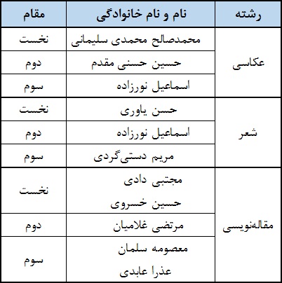 معرفی نفرات برتر نخستین مسابقات (عکاسی ، شعر و مقاله نویسی) عاشورایی