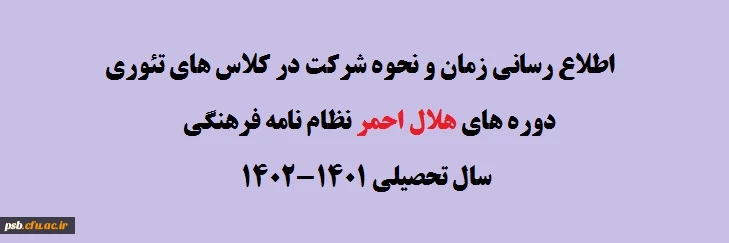 اطلاع رسانی زمان و نحوه شرکت در کلاس های تئوری دوره های هلال احمر نظام نامه فرهنگی سال تحصیلی 1401-1402 2