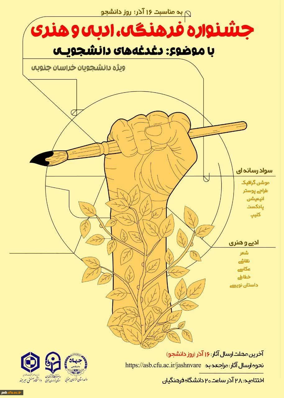 امتیاز دهید : جشنواره فرهنگی، ادبی و هنری با موضوع دغدغه های دانشجویی به مناسبت 16 آذر 2 یکشنبه 6 آذر 1401 ساعت 13:49